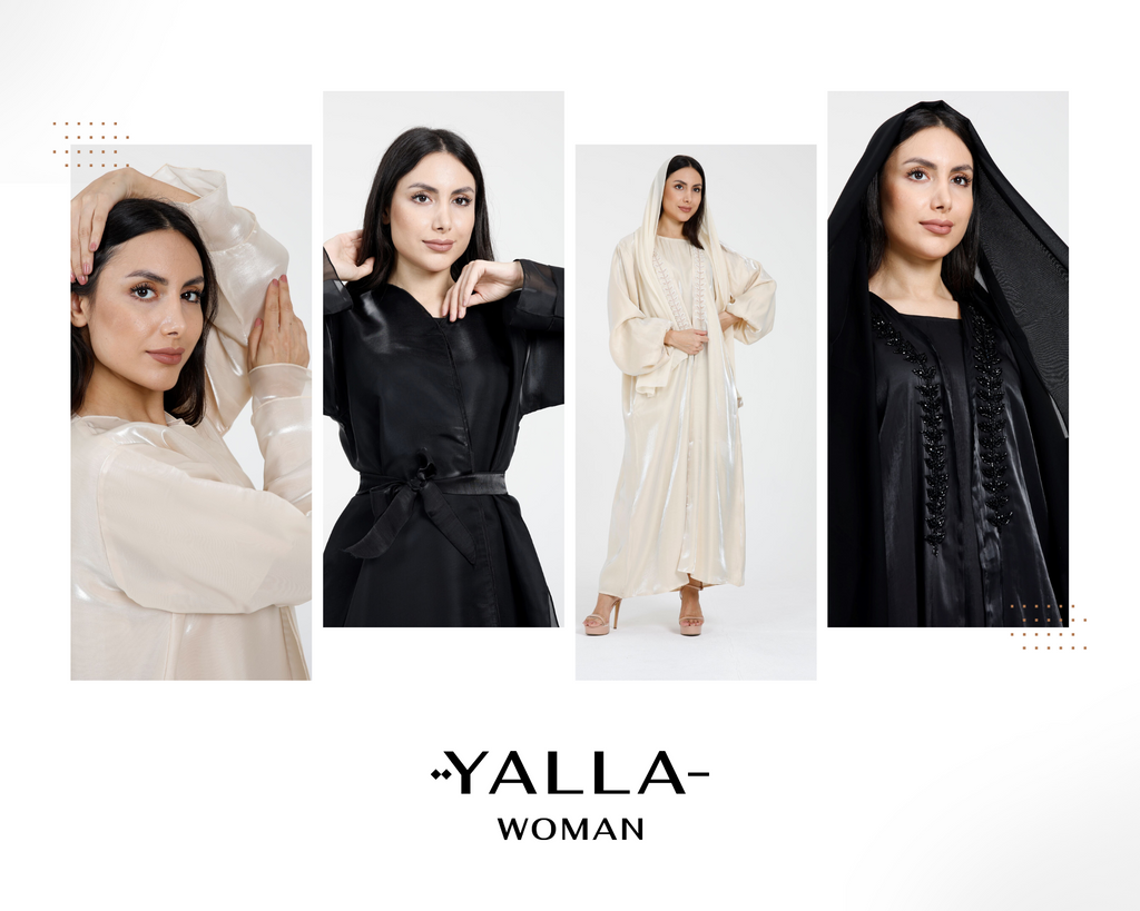 Our new collection of womens abayas comes in a versatile range of styles, materials and colours.Whether you are looking for a traditional black abaya or a colourful, elegant Islamic three-piece, we have whatever you need, and these luxury abaya pieces are hand-crafted by our talented Muslim tailors in the UAE with only the finest materials available including glamorous organza and soft zoom to create fresh looks for you. Our abayas for women are designed with beautiful embroidery and hand-placed gems, making every design unique. Our jacket-style abayas are "all the rave", so pair with some jeans or wear the abaya dress with some gorgeous heels, the style choices are endless. For a different style, we also stock a range of womens jalabiya.