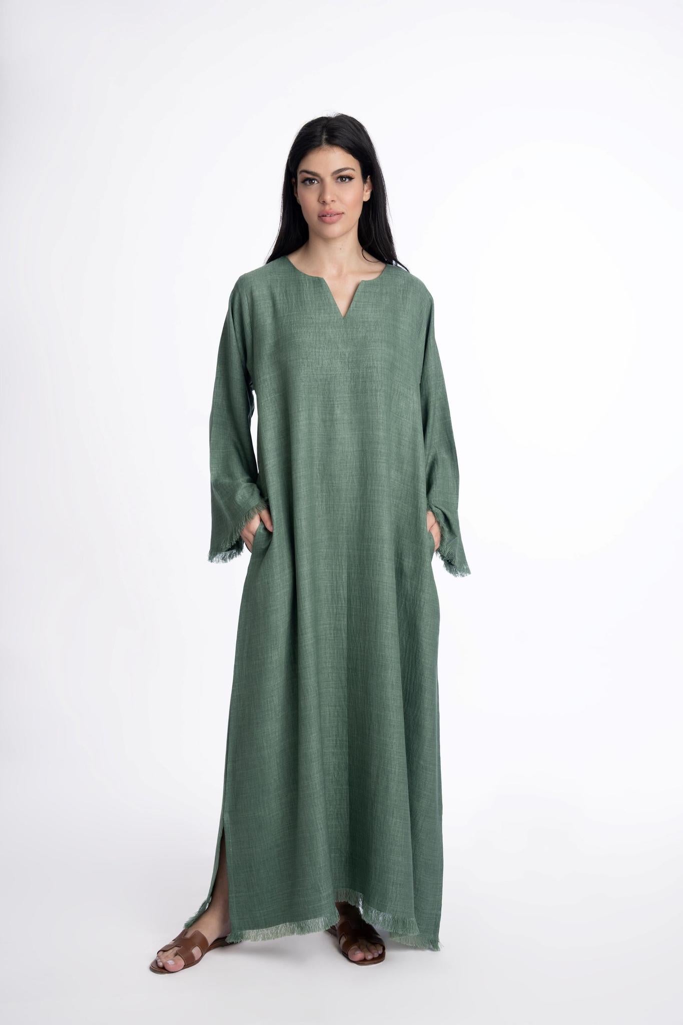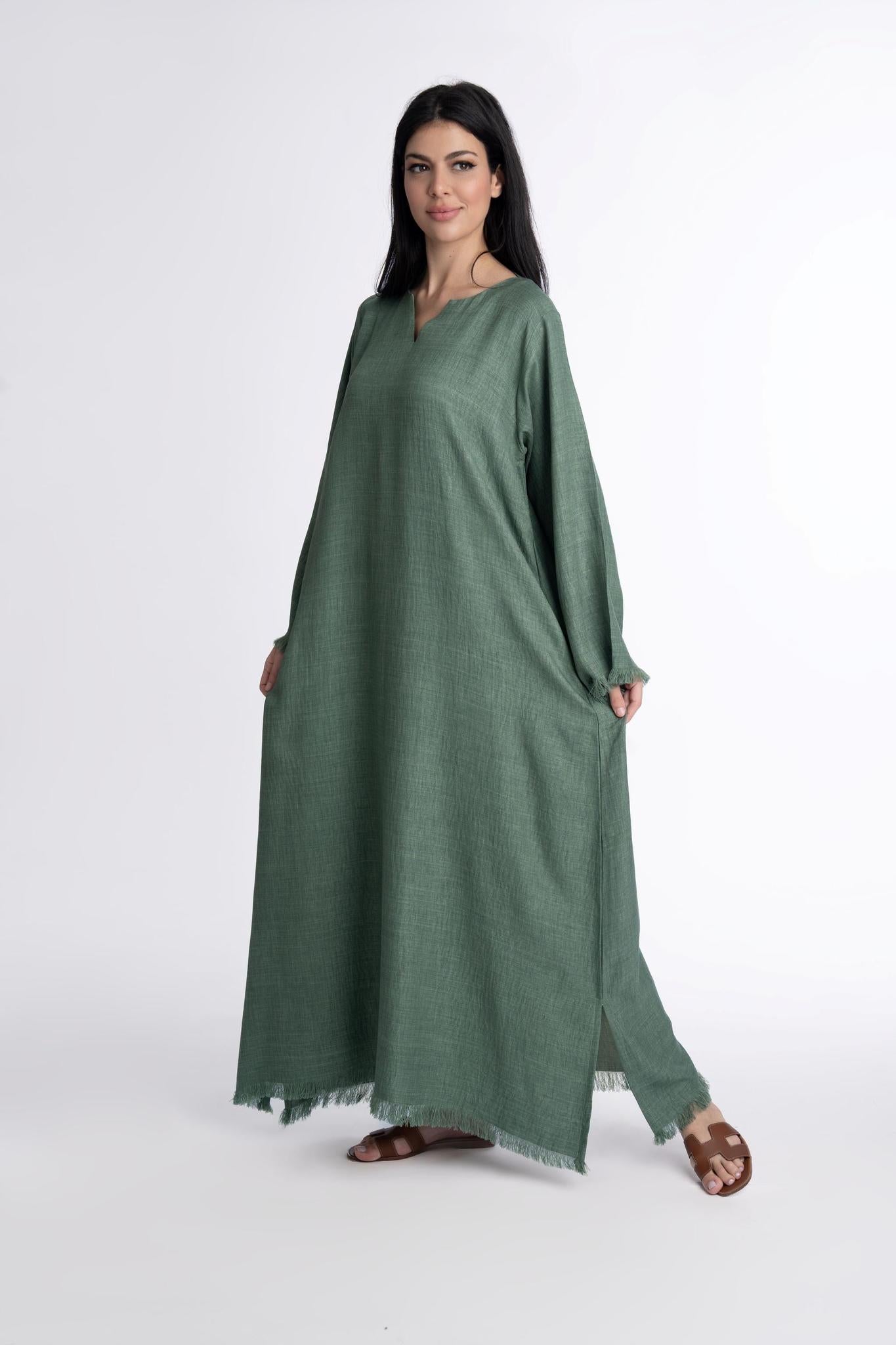 Haifa Linen kaftan is the perfect summer modest fit that can be effortlessly dressed up or down for any occasion. Elevate your wardrobe with this elegant kaftan guaranteed to be your summer staple
