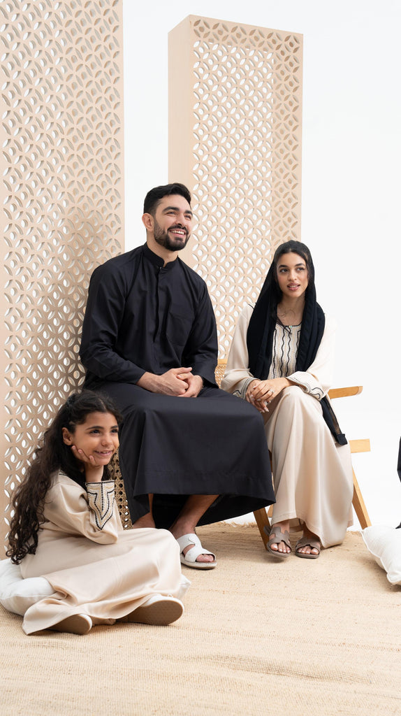 Looking for more? Explore our full ranges of women's luxury abayas, girls' jalabiyas, and men’s kandoras to complete your family’s coordinated style story.