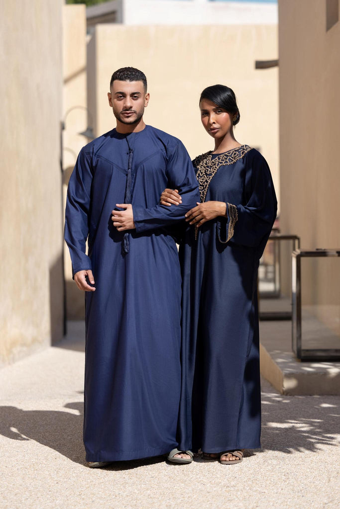 Each matching set is carefully coordinated to ensure a seamless, sophisticated look for both him and her. From soft neutrals to rich, bold shades, you’ll find the perfect match for weddings, Eid, engagement parties, or simply celebrating love every day. Our women's abayas and jalabiyas are crafted with hand-finished embroidery and premium materials, while the men’s kandoras offer tailored fits and refined traditional craftsmanship.