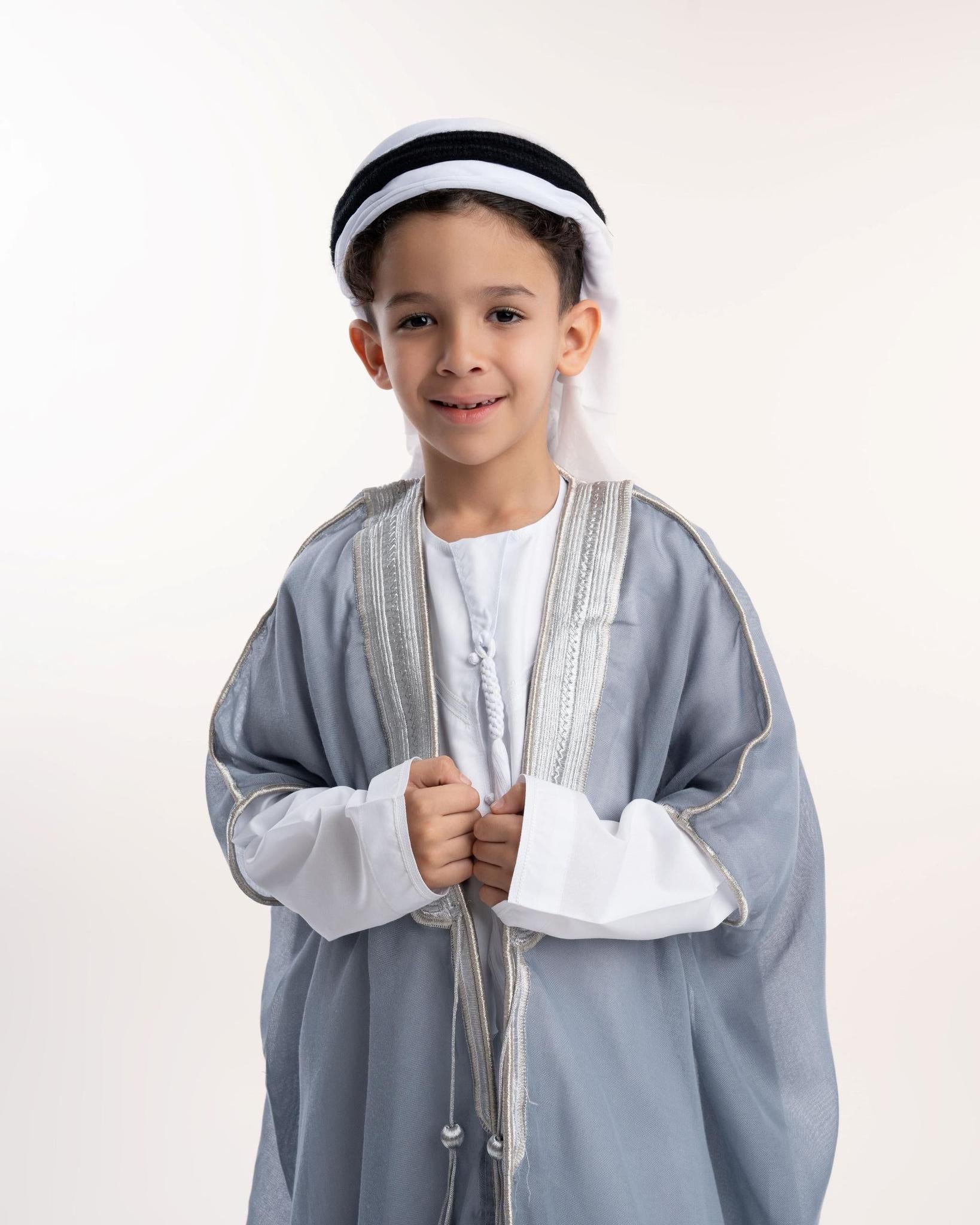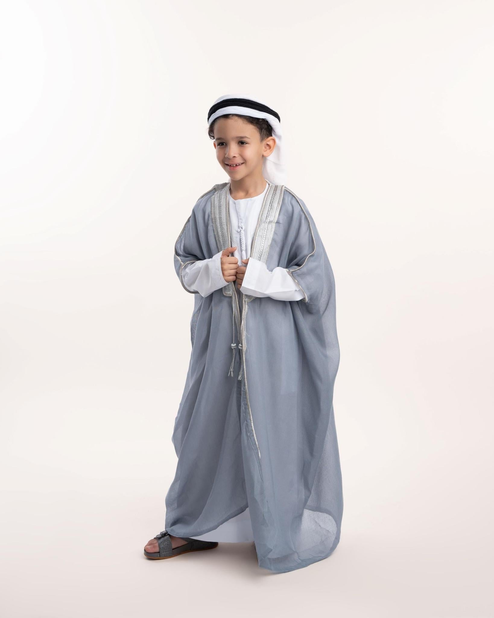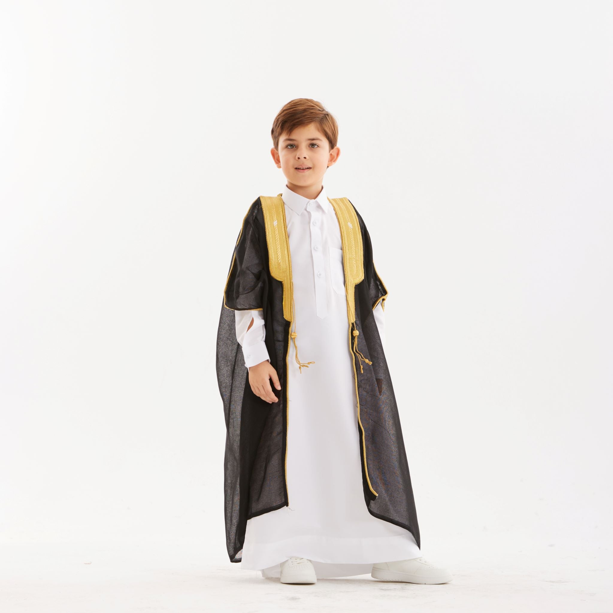 A Bisht is a traditional Arabic cloak worn by men and boys that adds a touch of elegance and sophistication to the overall look.