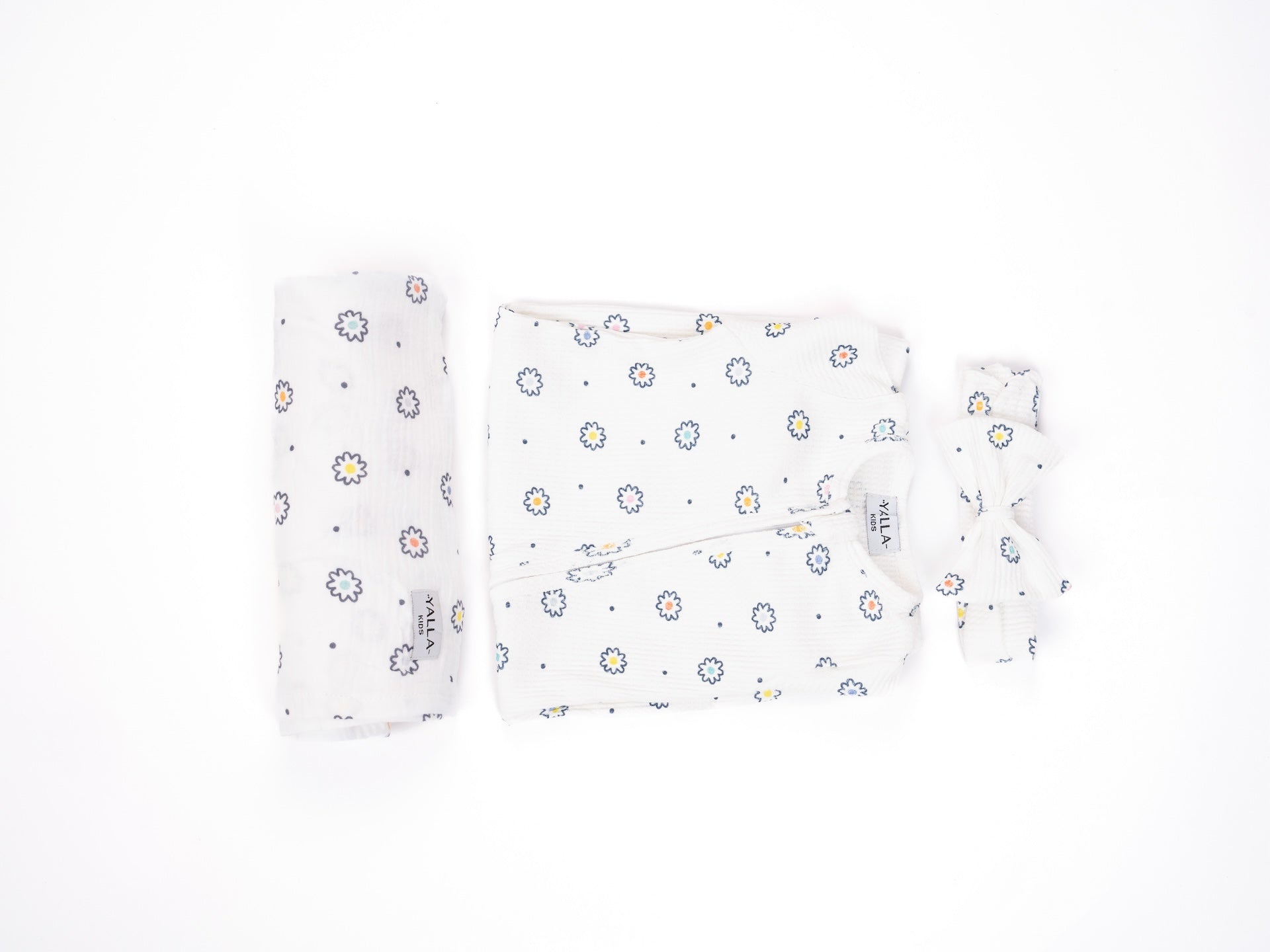 Fabrics: soft cotton blend; breathable muslin swaddle