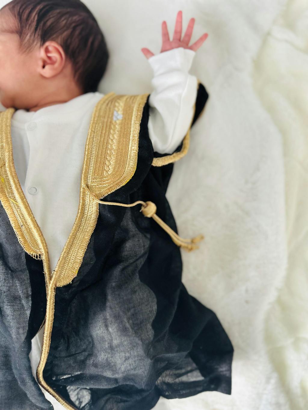 A Bisht is a traditional Arabic cloak worn by men and boys that adds a touch of elegance and sophistication to the overall look.