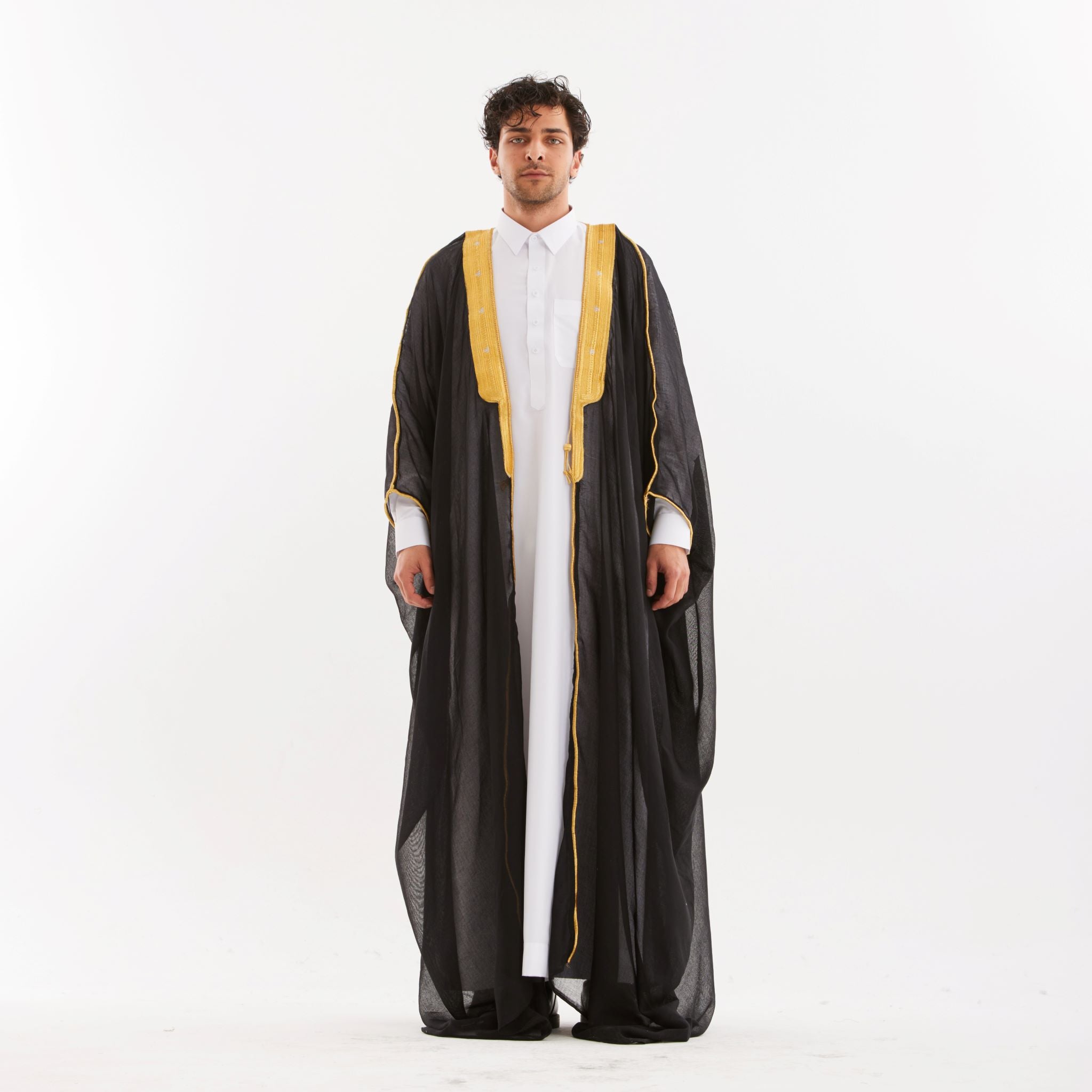 A Bisht is a traditional Arabic cloak worn by men and boys that adds a touch of elegance and sophistication to the overall look.