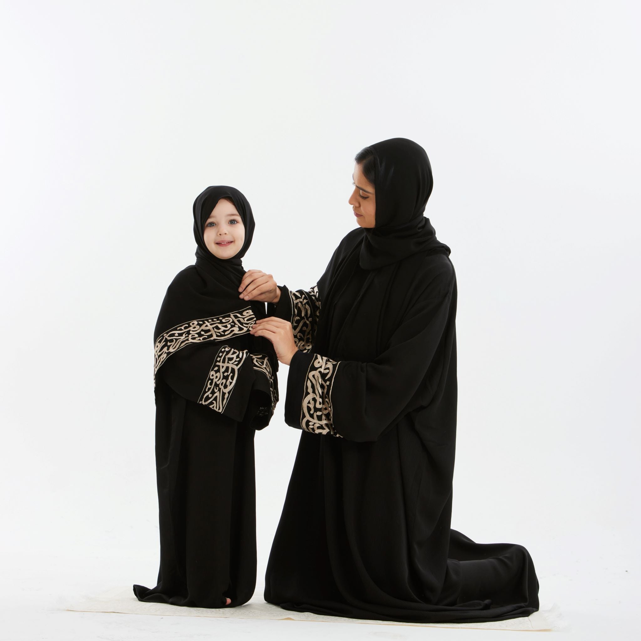 Step into serenity with our Prayer Abaya, designed for beauty, comfort, and ease. This elegant piece features intricate Arabic calligraphy gracefully embroidered on both the abaya and attached hijab, celebrating faith through timeless art.