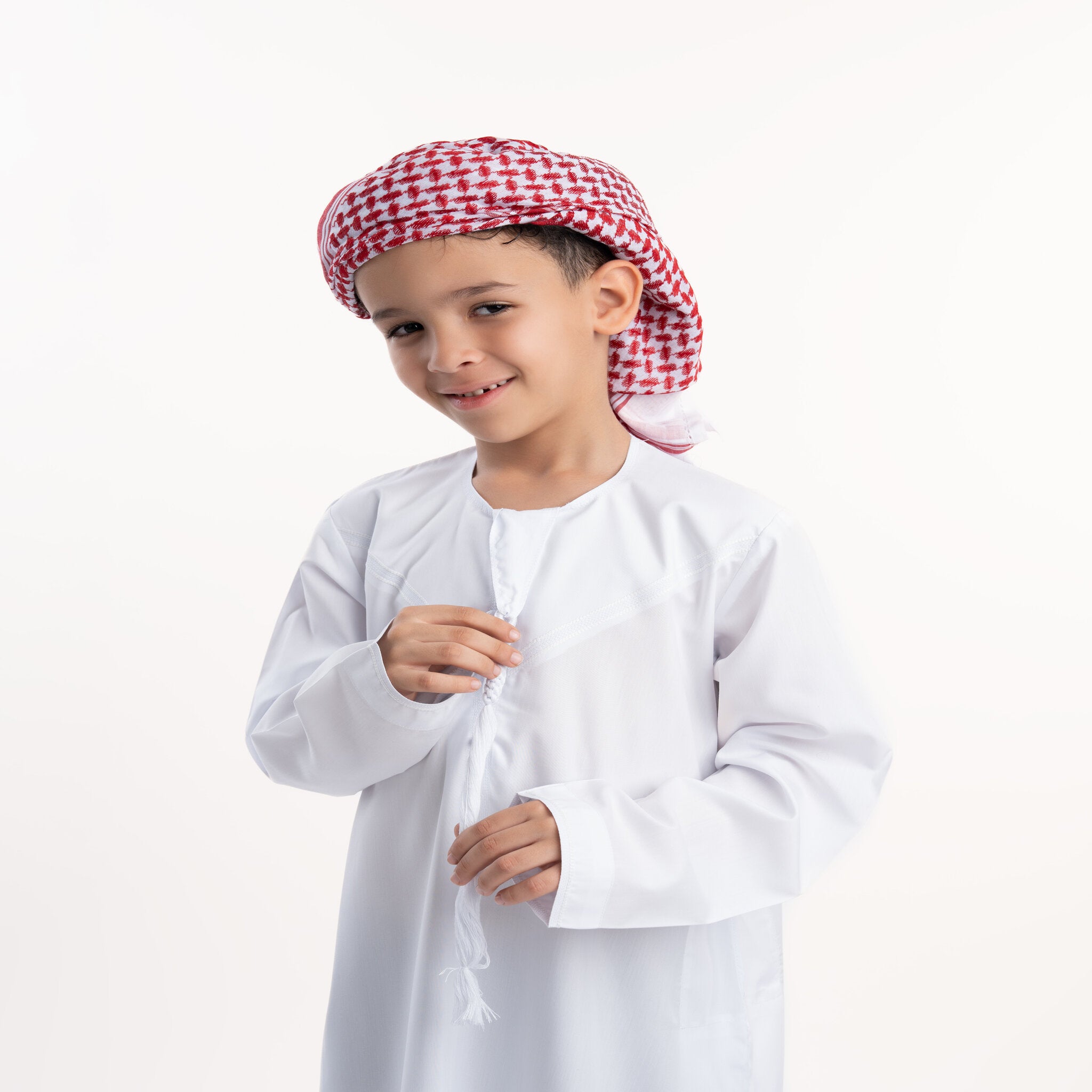 Wear your ghutrah in the traditional Arab way without any fuss. Our ghutrah for children and babies come with an adjustable strap inside the hat so you can have it on your child within seconds.