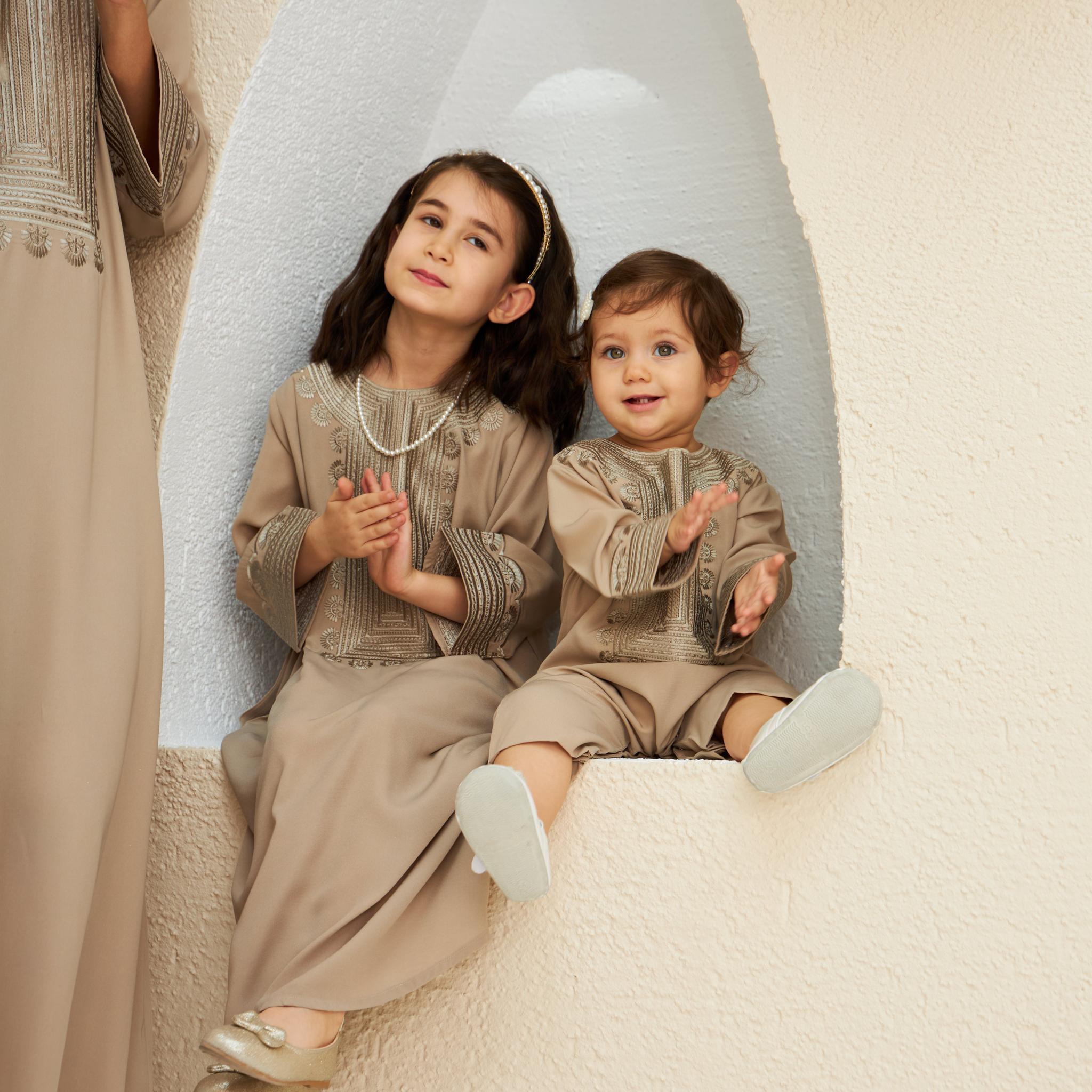 The Latifa Jalabeya, a timeless and sophisticated piece inspired by the natural beauty of the Arabian desert. The cream colour is a neutral and versatile choice that can be dressed up or down, making it perfect for any occasion.
