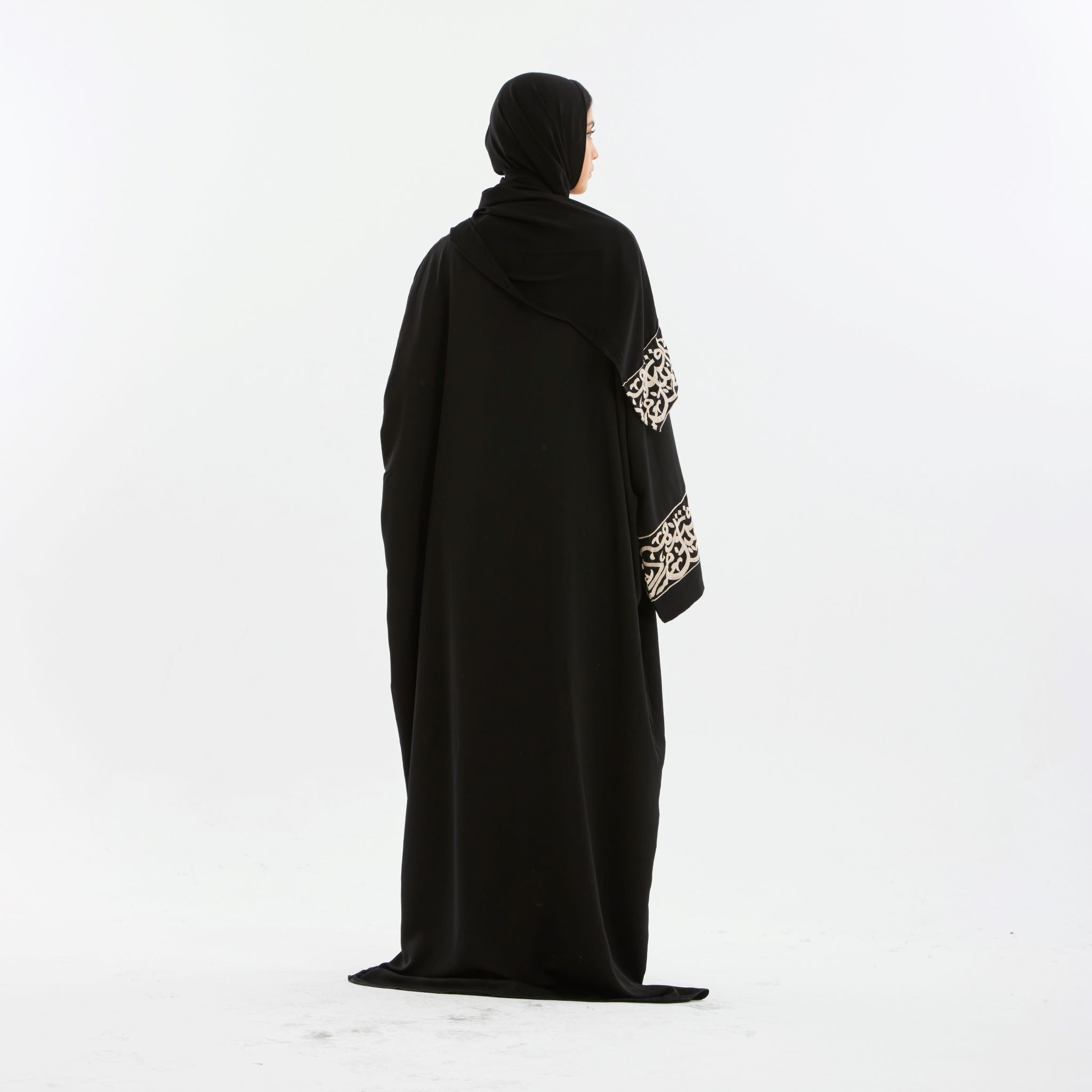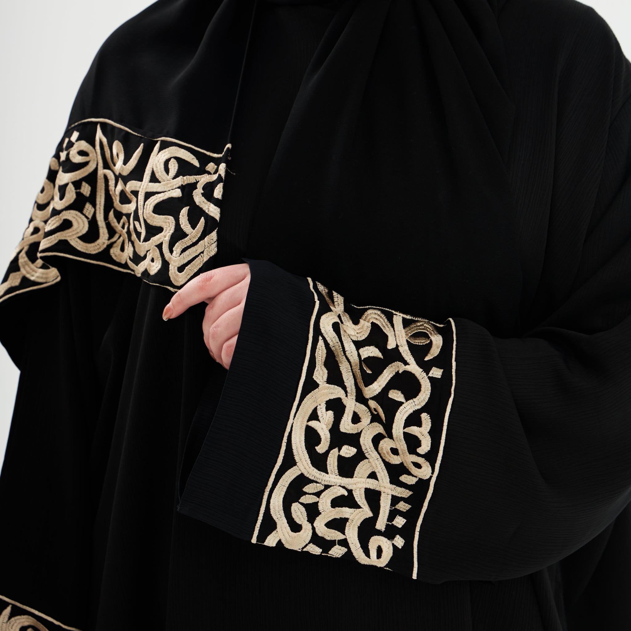 Step into serenity with our Prayer Abaya, designed for beauty, comfort, and ease. This elegant piece features intricate Arabic calligraphy gracefully embroidered on both the abaya and attached hijab, celebrating faith through timeless art.