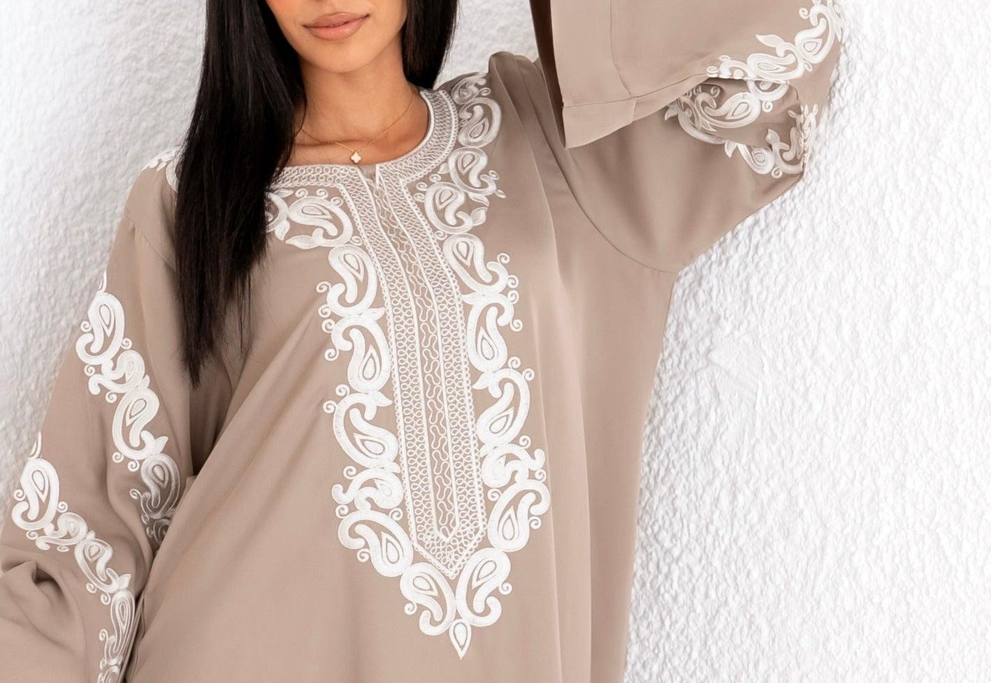 The ash colour jalabeya is a timeless classic which captures the essence of luxury and elegance. With a luxurious embroidery detailing around the sleeves and on the front of the jalabeya, this piece is sure to turn heads and make you stand out from the crowd. Now available in limited numbers, don't miss your chance to own a piece of unique luxury.