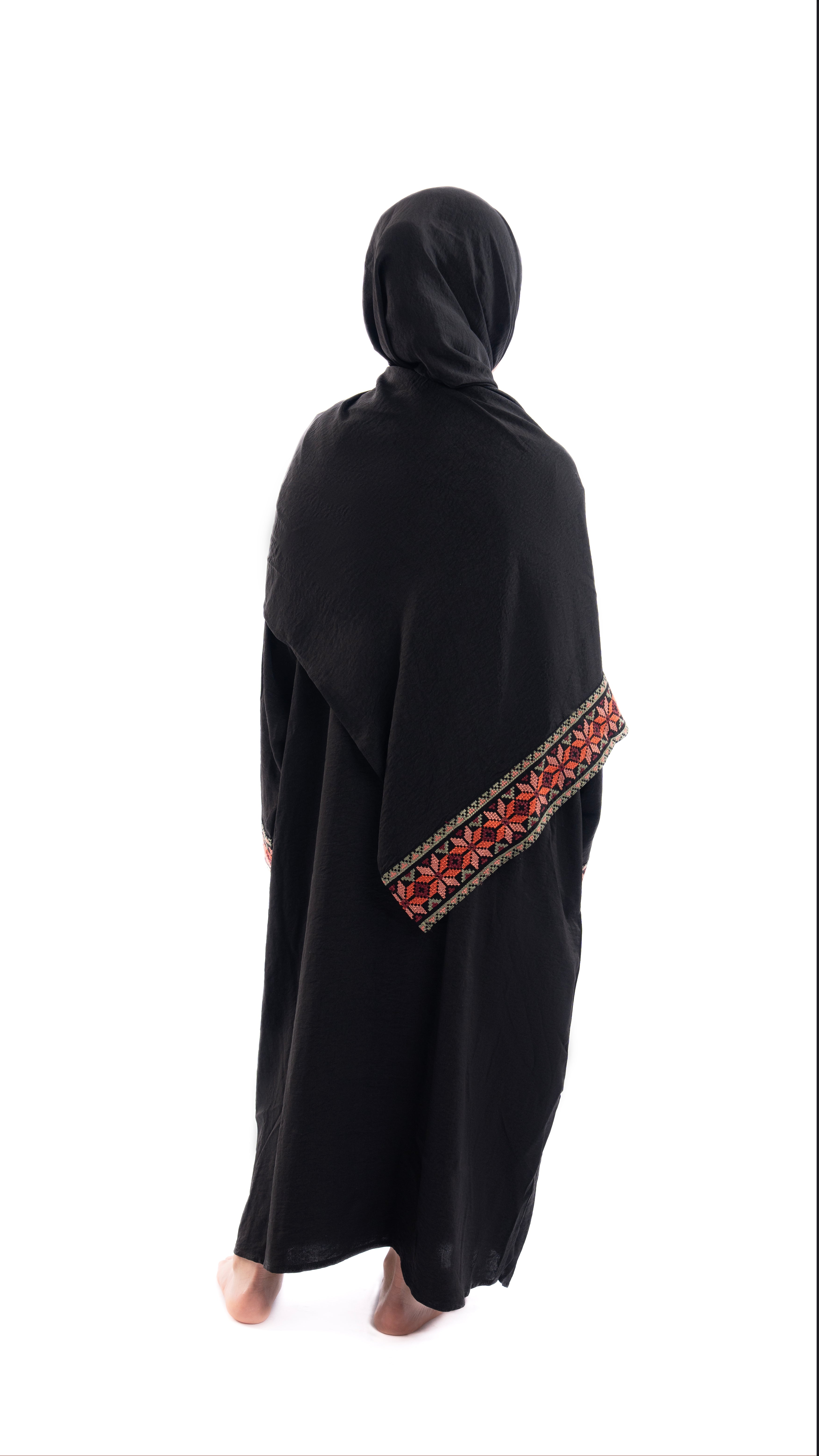 Luxurious tatreez wrap prayer abaya with attached hijab. Designed with an attached hijab, this prayer abaya allows ease and elegance with every Salah. Getting you ready for Ramadan, its unique design is an essential for your nights of duas. Inspired by the traditional tatreez style embroidery in a unique wrap design