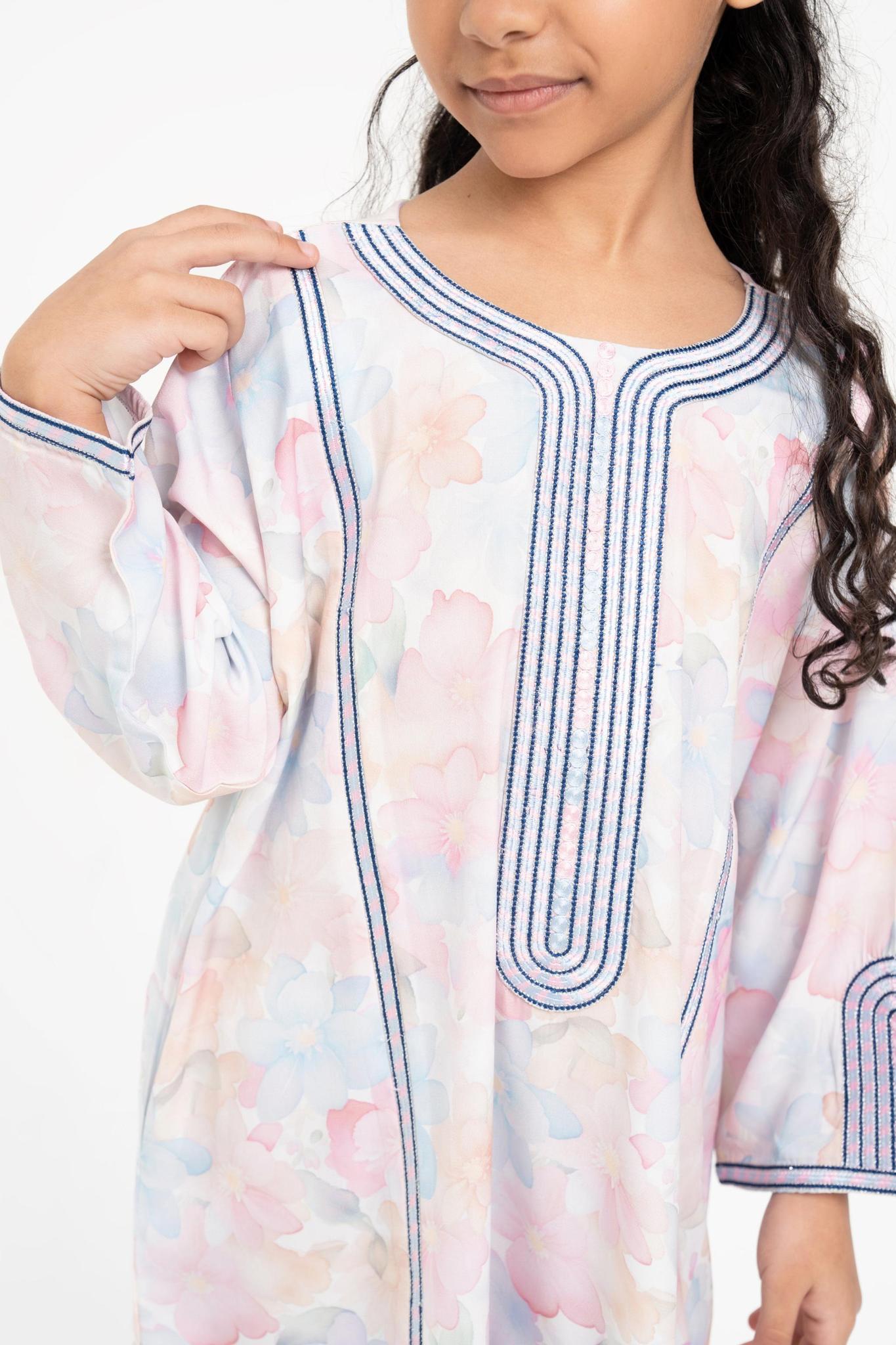 A unique floral design made from a lightweight cotton blend, the perfect girly jalabeya